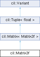 - Public Member Functions inherited from cil::Matrix< Matrix3f >