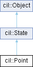 The Point class inherits from the base class State, defining size and other properties of Point. More...