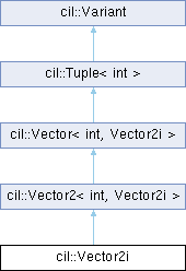 - Public Member Functions inherited from cil::Vector< int, Vector2i >