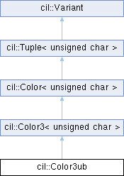 The Color3ub class inherits from Color3, specilizing the template parameters to unsigned char for element type.