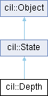 The Depth class inherits from the base class State, describing how the depth test is operated during rendering.