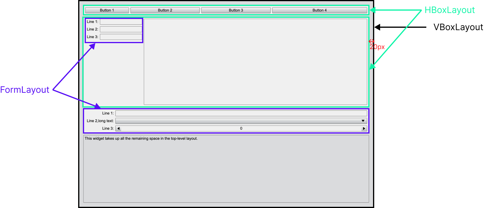 formLayout.addItem('Line 3:', new Edit());